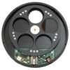 The Standard USB filter wheel was first introduced in 2009 and adds many new features to a useful imaging accessory. It is unique in that it does not require a separate power supply when used with USB control – the high performance DC gearmotor runs entirely from the USB supply and consumes less than 100mA. It is also capable of operation from a serial input, or from a switched hand controller, both of which power the wheel from a small dry battery.